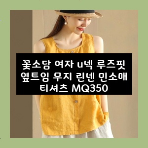 꽃소담 여자 u넥 루즈핏 옆트임 무지 린넨 민소매 티셔츠 MQ350